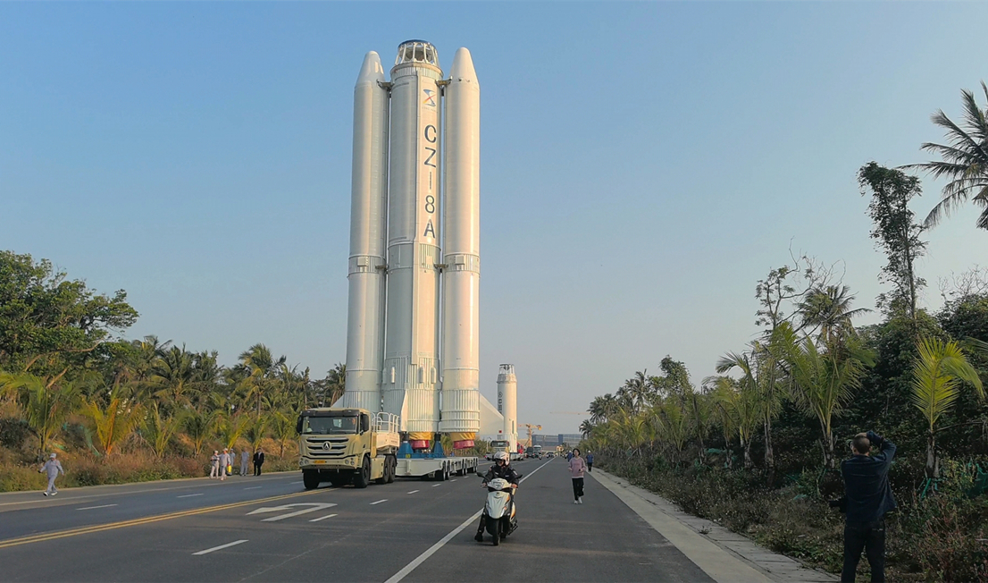 圖為火箭轉(zhuǎn)運過程中。袁曉天 攝